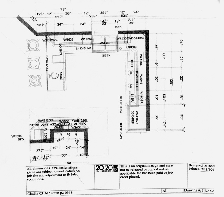 The photo above shows one of the kitchens we've designed and constructed. The images below are a few of the drawings of the initial kitchen design.